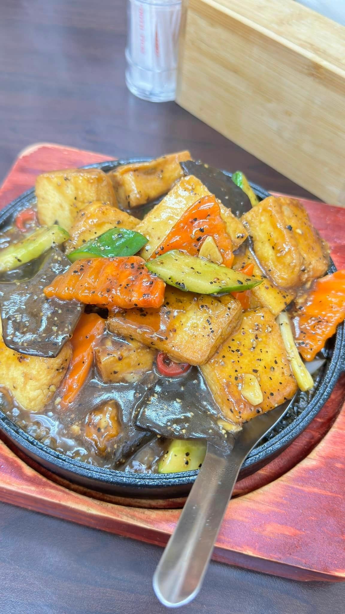 🥘鐵板豆腐 - 鐵板料理搭配黑胡椒醬絕配!雖然說口味偏重口一點,但整體而言很不錯~