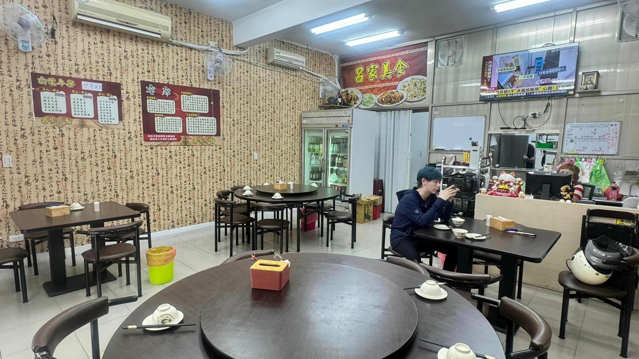 呂家小館提供平價熱炒,還有商業午餐合菜。店內一桌桌的圓桌適合設宴席,不過有一說一,用餐的時候我們總能聞到油煙味...